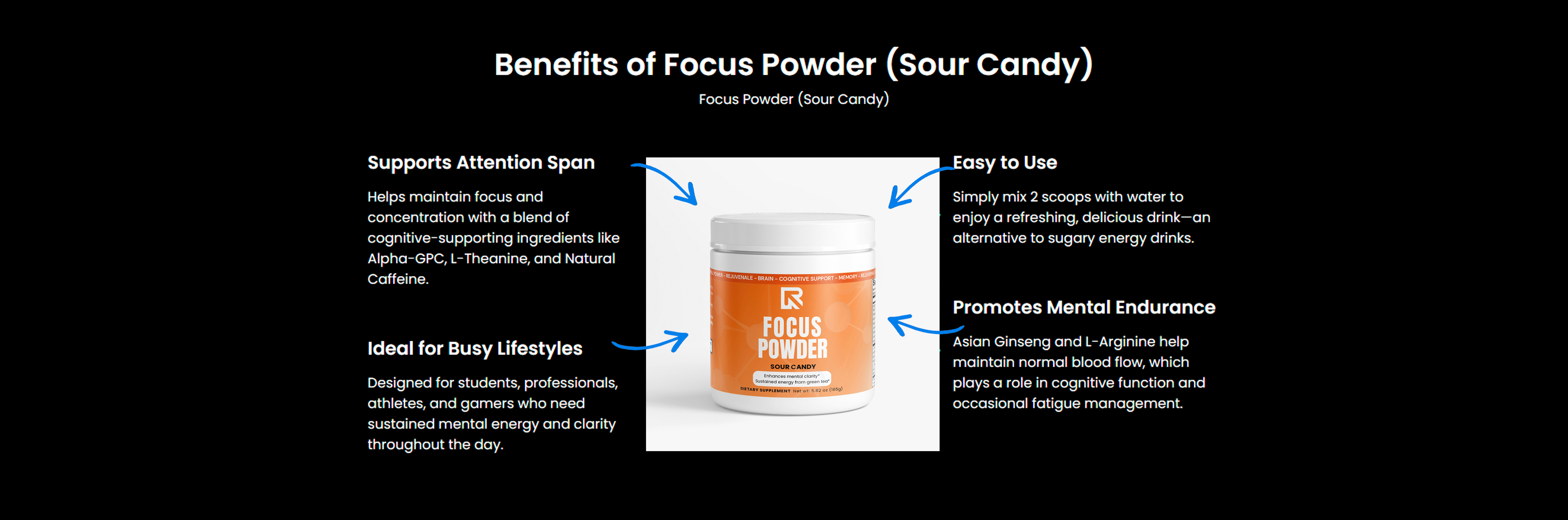 Focus Powder is a smart supplement designed to boost concentration, memory, and mental energy without sudden crashes.